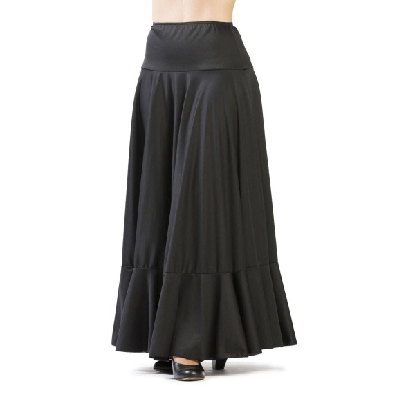 Falda de ensayo en punto de seda 100 % poliamida, ligera con canesú y un volante.Ligeramente entallada en la cadera.