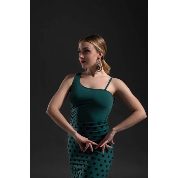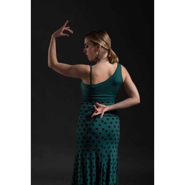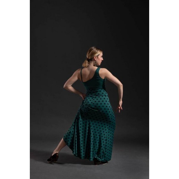 Falda larga de flamenco de Davedans.Confeccionada en punto elástico.Con un fajín que se ciñe a la cintura - cadera y realza la silueta.Incluye un godet en la parte trasera para aportar vuelo y movimiento al andar o bailar. Ideal para ensayos, clases o espectáculos donde se requiera movimiento fluido y elegancia.