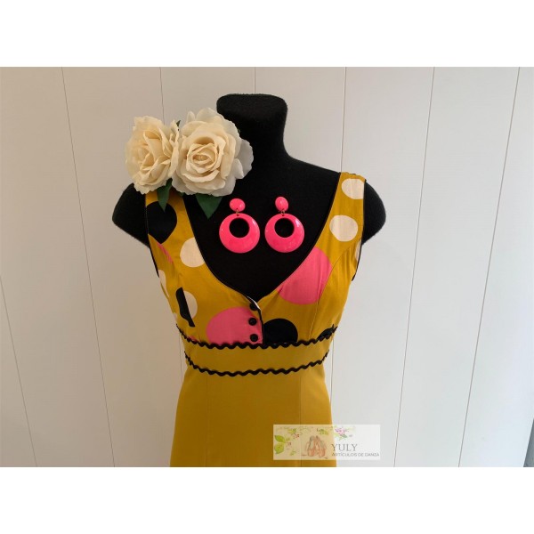 VESTIDO FLAMENCA MOSTAZA LUNARES